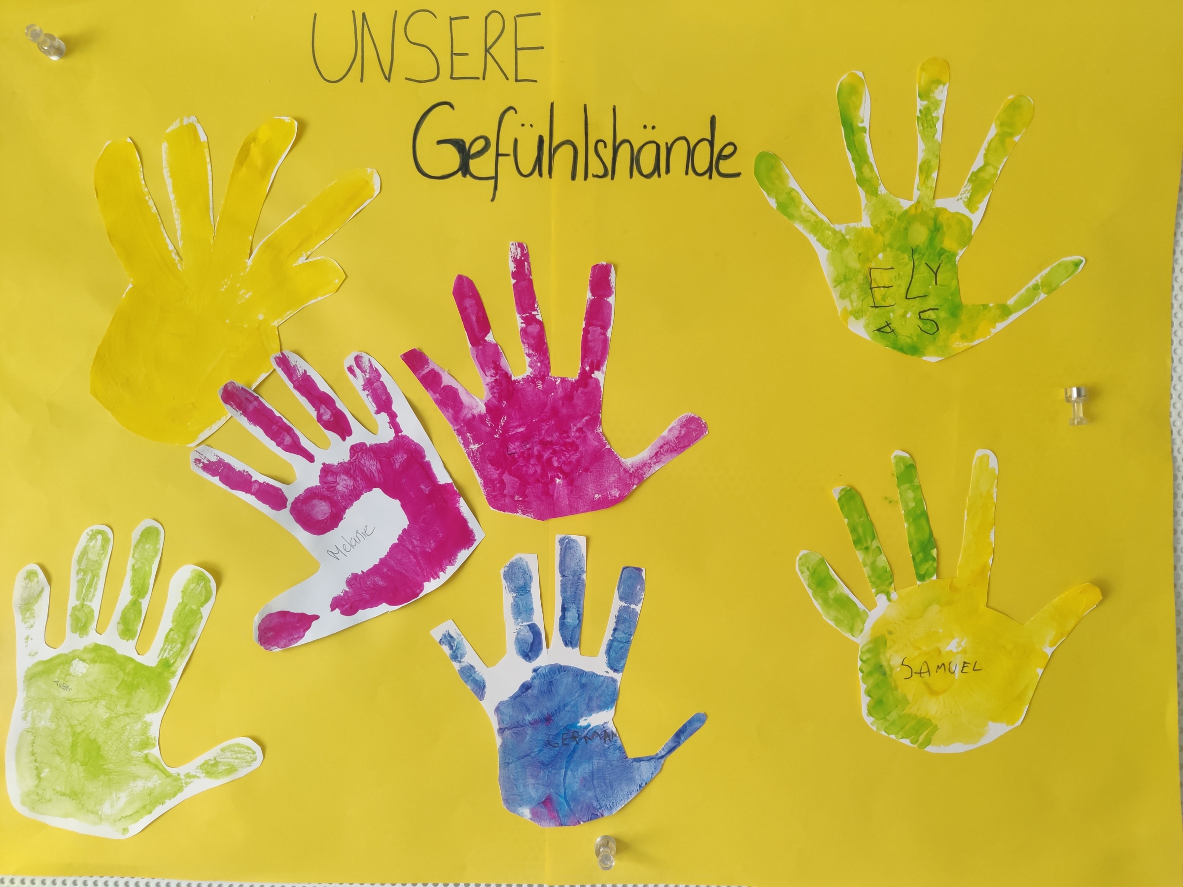 In der Klasse D haben wir dieses Jahr den Unterricht der Gefühle gestartet. Gemeinsam mit den Lehrkräften, pädagogischen Mitarbeitenden und den Kindern konnten wir einzigartige, individuelle Gefühlshände gestalten und Gefühlsmonster basteln. Dieses Stimmungsbild der Klasse D werden wir am Ende des Schuljahres wiederholen, um zu sehen, wie die Kinder sich in der Klasse fühlen. Dieses Stimmungsbild stellt eine Momentaufnahme dar und kann genutzt werden, um mit den Kindern in Austausch zu treten.