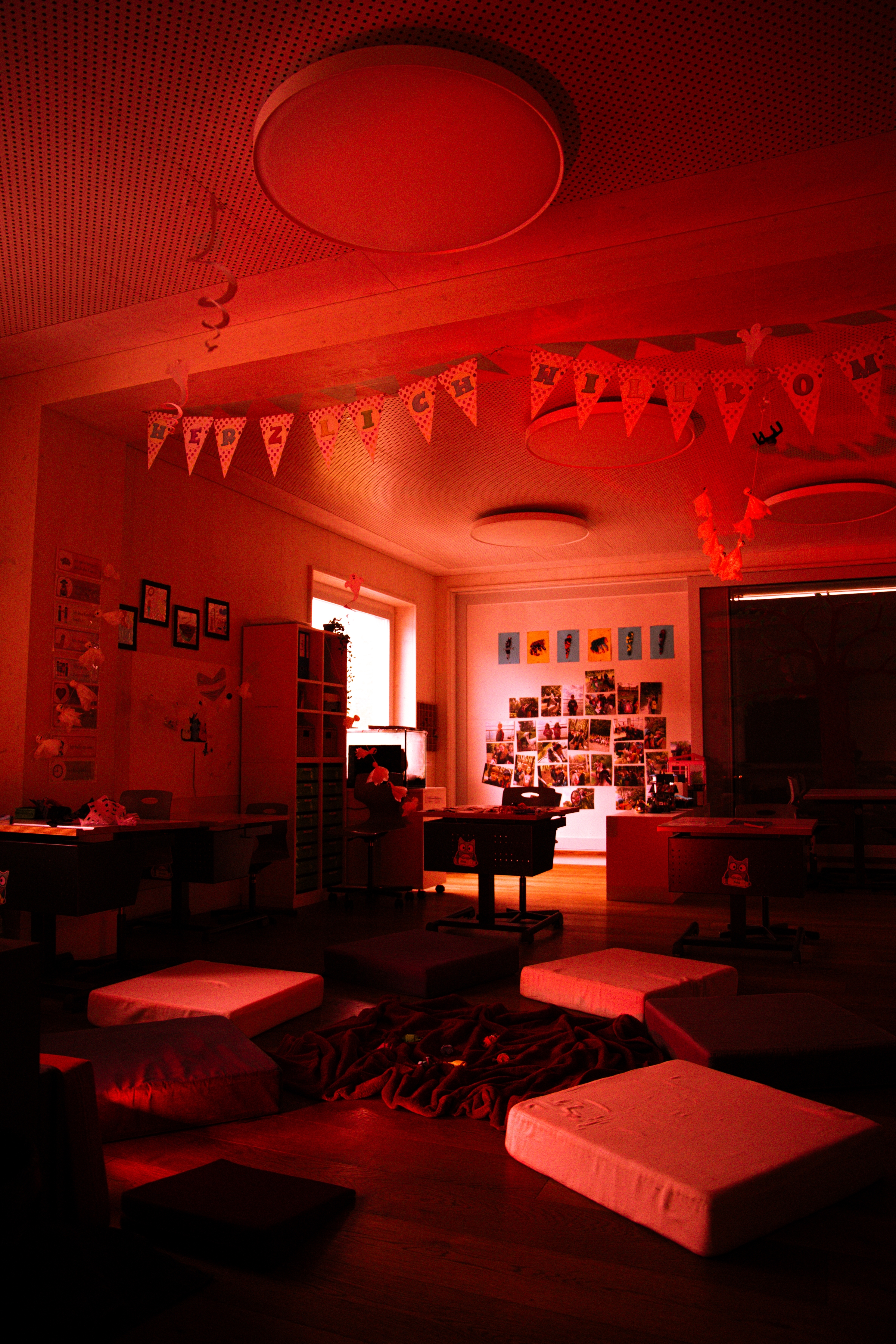 Zur Feier des Tages kamen die Kinder in kreativen Kostümen zur Schule, passend zum Halloweenmotto: Vampire, Wednesdays, Gruselprinzessinnen und weitere gruselige Gestalten belebten den Raum und sorgten für eine fantastische Atmosphäre. Auch das Programm gestaltete sich ganz im Sinne von Halloween: Neben gruseligen Spielen wie «Die Ekelbox» versetzten wir uns mit Gruselgeschichten in rotem Licht, ein paar Kerzen und schauriger Hintergrundmusik in die richtige Stimmung.