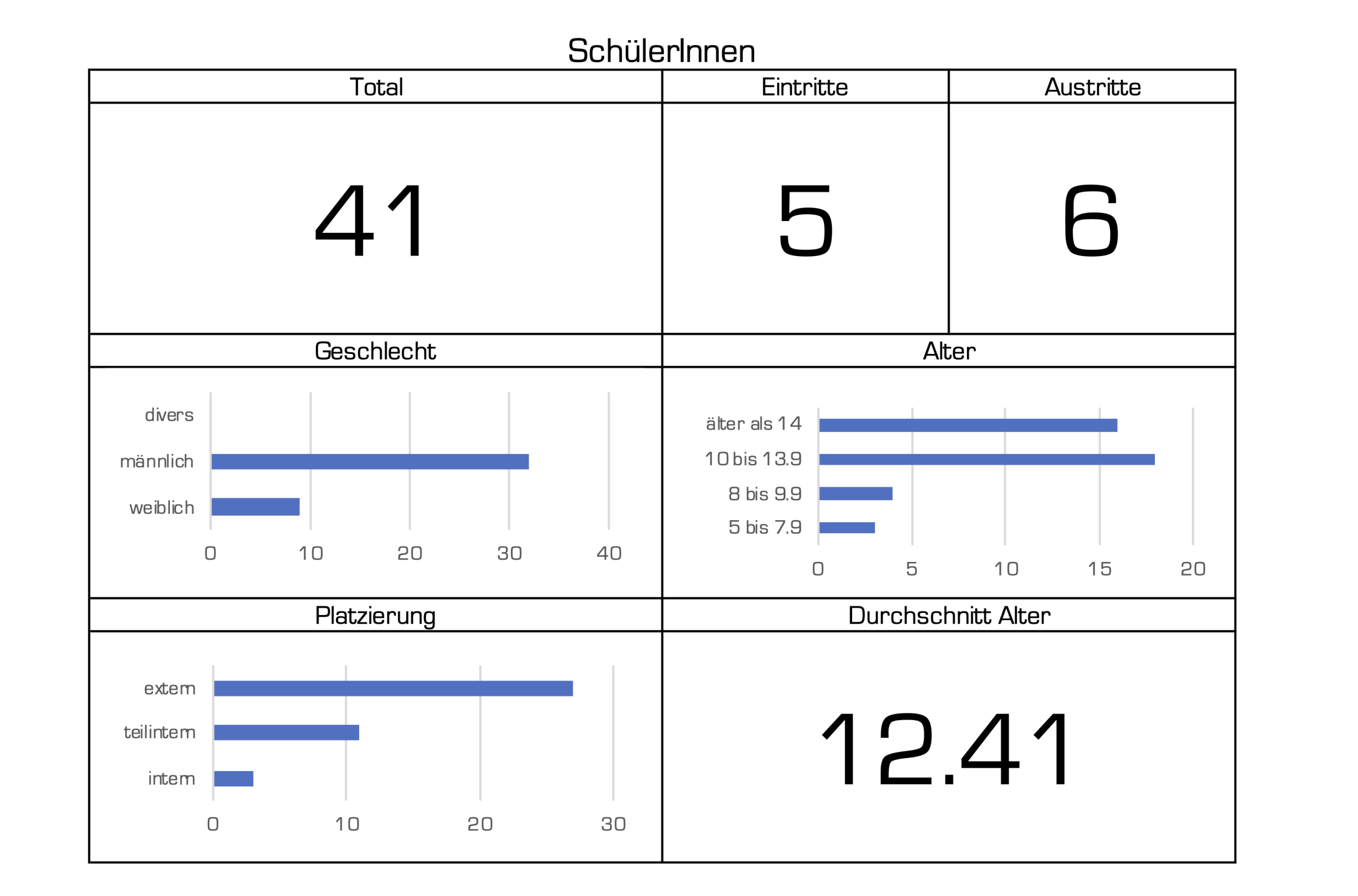 Ein Zusammenzug der Zahlen über unsere Schülerinnen und Schüler bezüglich deren Alter, Status und Anzahl.